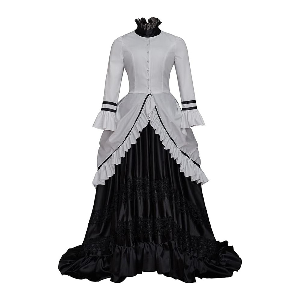 (X-Large, Black and White) Steampunk Victorian Prom Gown Cosplay Costume Victorian Bustle Dress Gown Costume Edwardian Dress