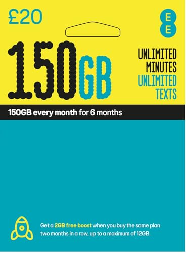 EE 150GB Data sim inc £20 top up giving 150GB, Unlimited Mins & Unlimited Texts