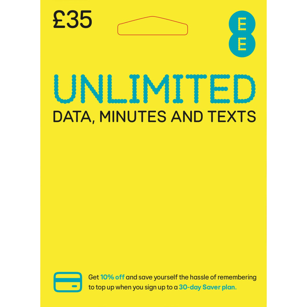 EE Unlimited Data Sim includes 35 pre-paid credit, Unlimited Data, Unlimited Minutes & Unlimited Texts