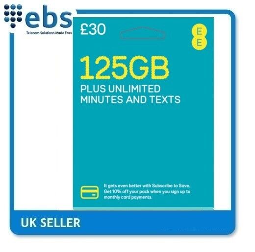 EE 4G/5G 125GB Data Unlimited Calls & Texts simcard Official Retail £30 Sim Pack