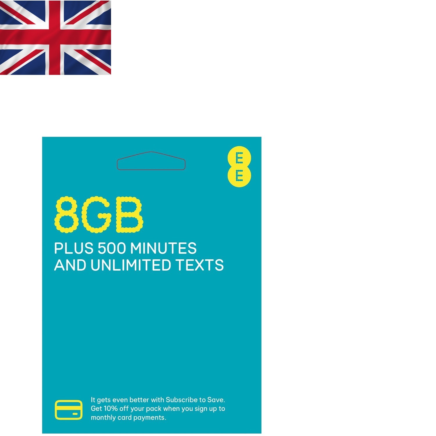 EE £10 SIM Card with 8GB Data, Unlimited Texts & 500 Mins - Perfect for UK Users