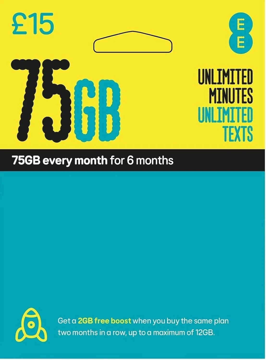 EE 25GB Data Sim includes 15 pre-paid credit, Data, Unlimited Minutes & Texts (EE 15-25GB)