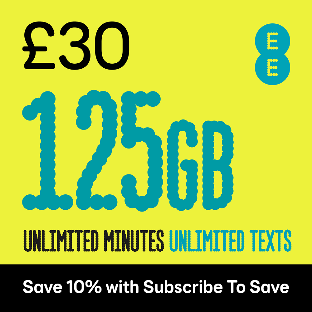 EE 125GB Data sim inc £30 top up giving 125GB, Unlimited Mins & Unlimited Texts