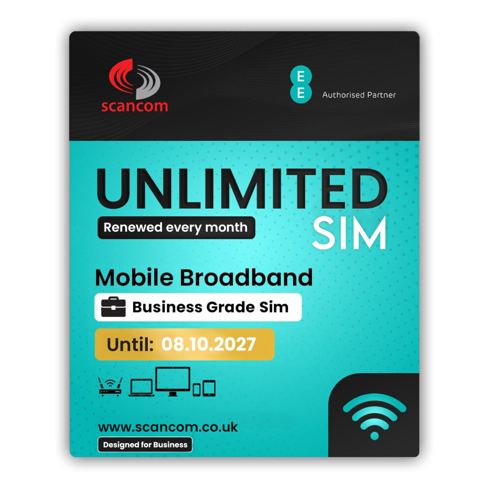 EE Unlimited Data SIM – Uncapped 5G Speeds – Preloaded EVERY MONTH Until 8th September 2026 – No Contract – Plug & Play for Business Broadband, Routers & Phones