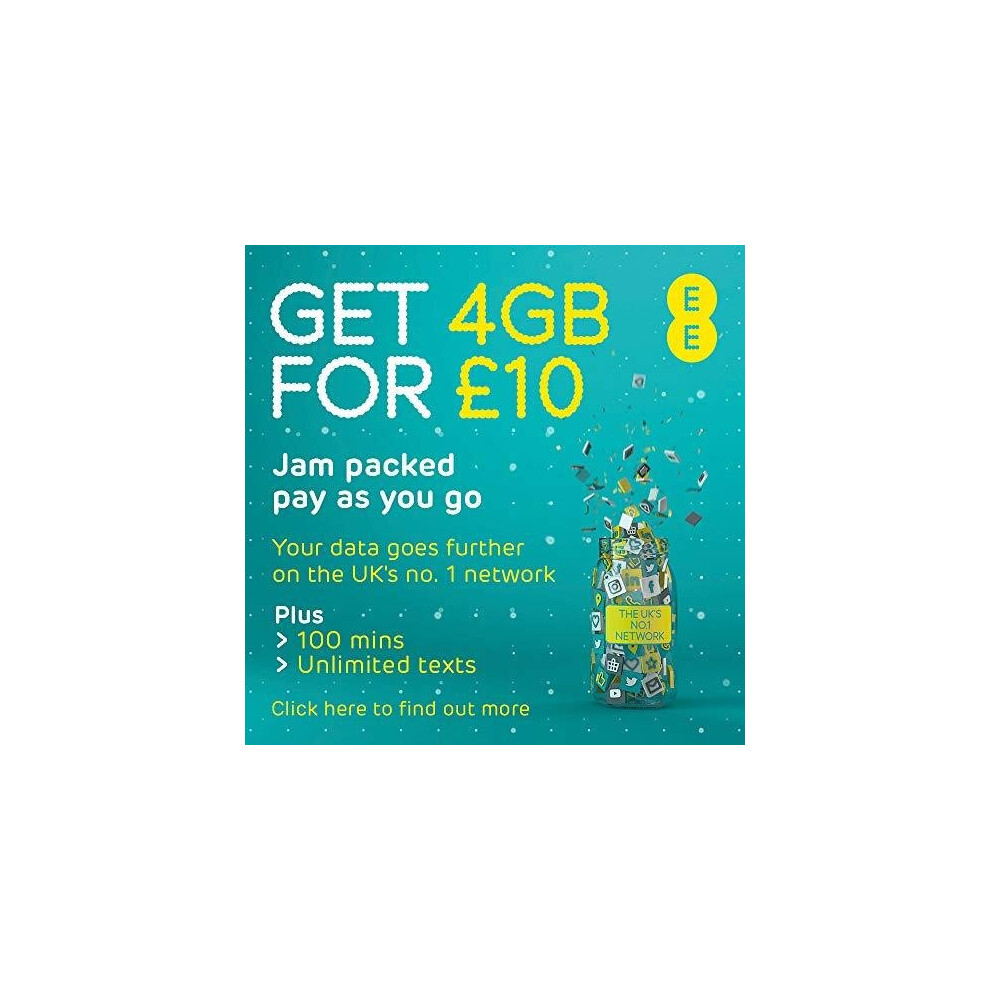 EE Pay As You Go SIM Card UK PREPAID PAYG £10 Bundle 8GB + (12GB FREE DATA every month for 6 months with regular top ups (Promotion request deadline of 31.01.2026)