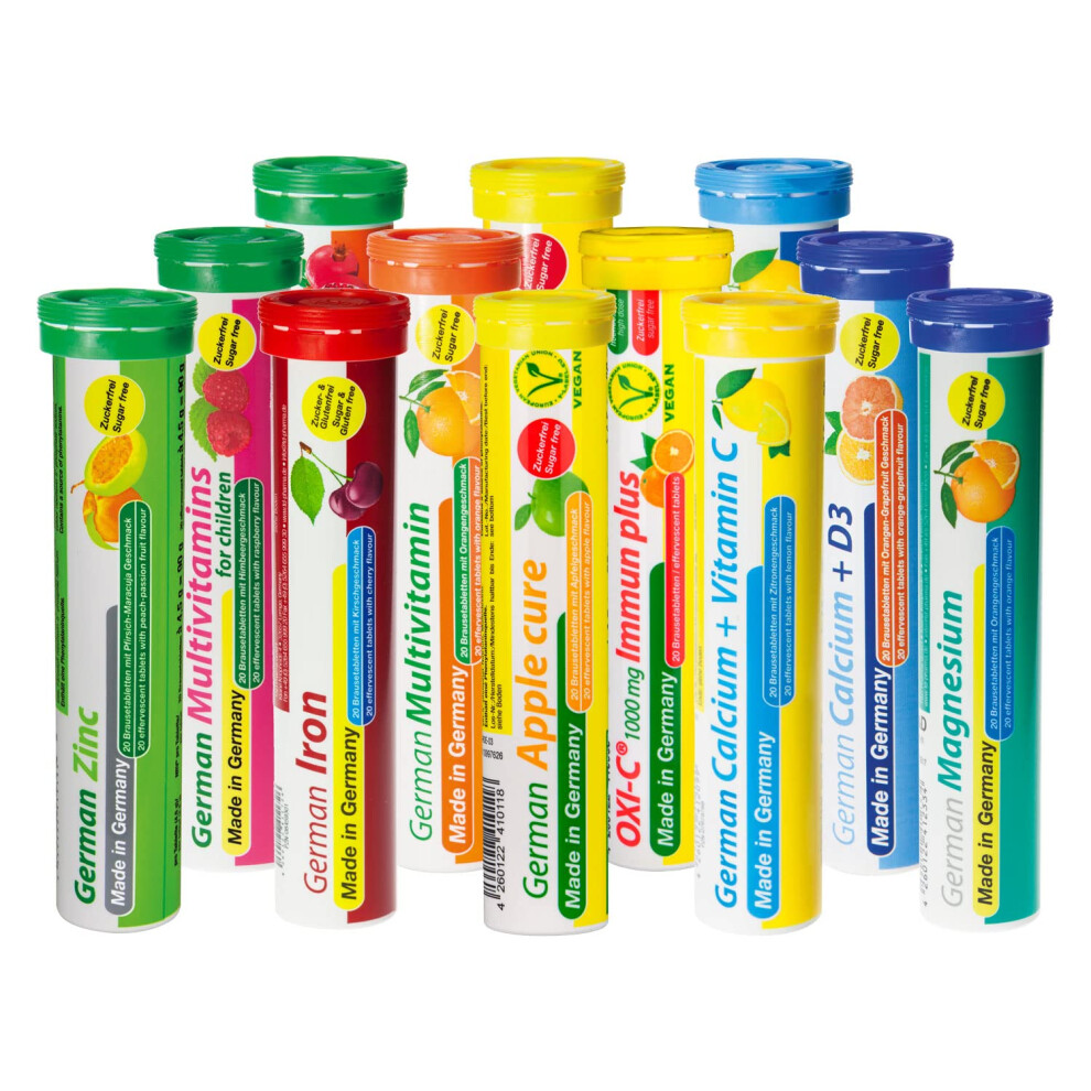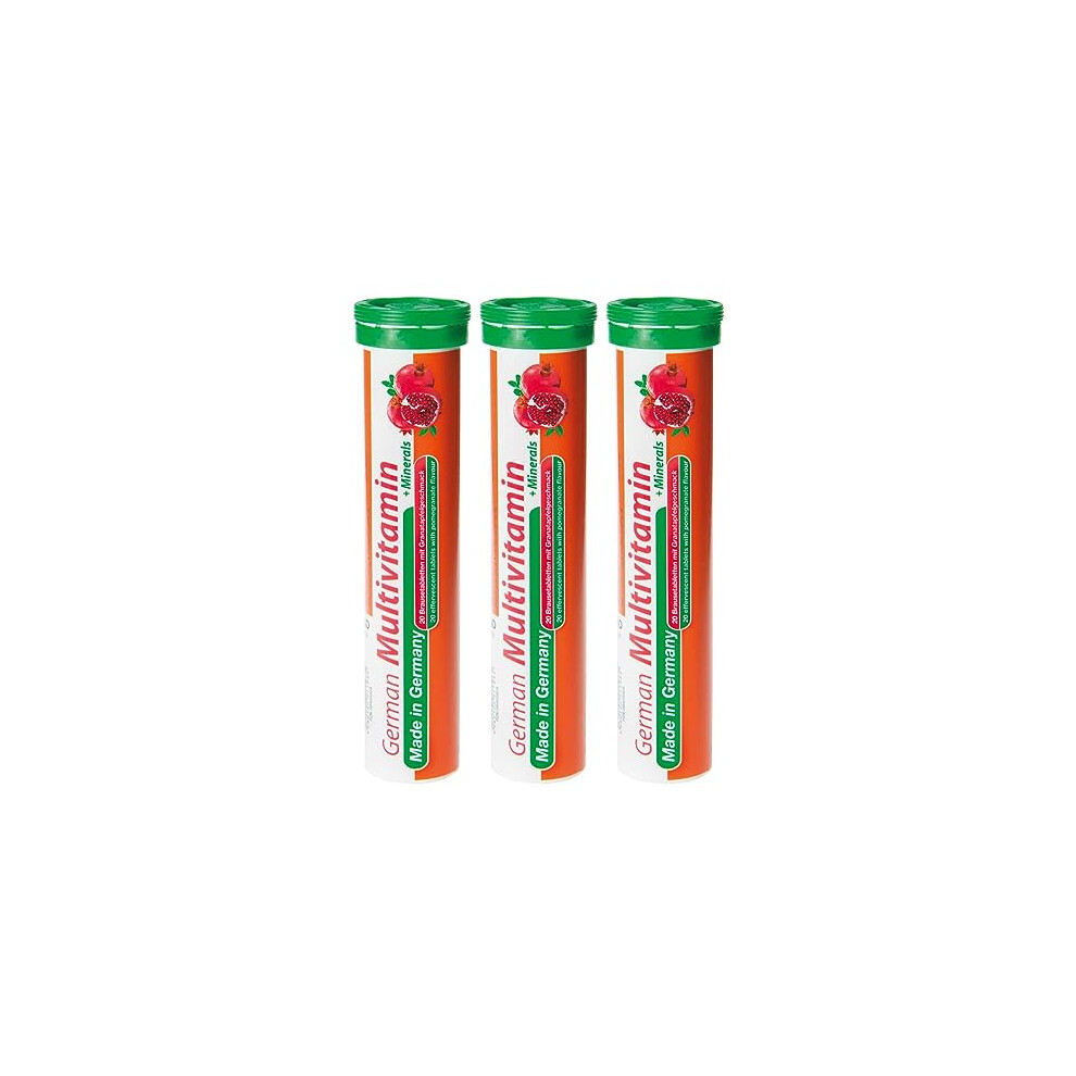 German Multivitamin + Mineralien Drink Effervescent Tablets 60 Servings Pomegranate Flavour â 10 Vitamins + 2 Minerals â Made in Germany