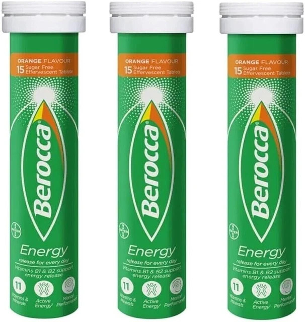 Berocca Energy Orange Effervescent Tablets 3x15 Pack (45 Total) Vitamins B C