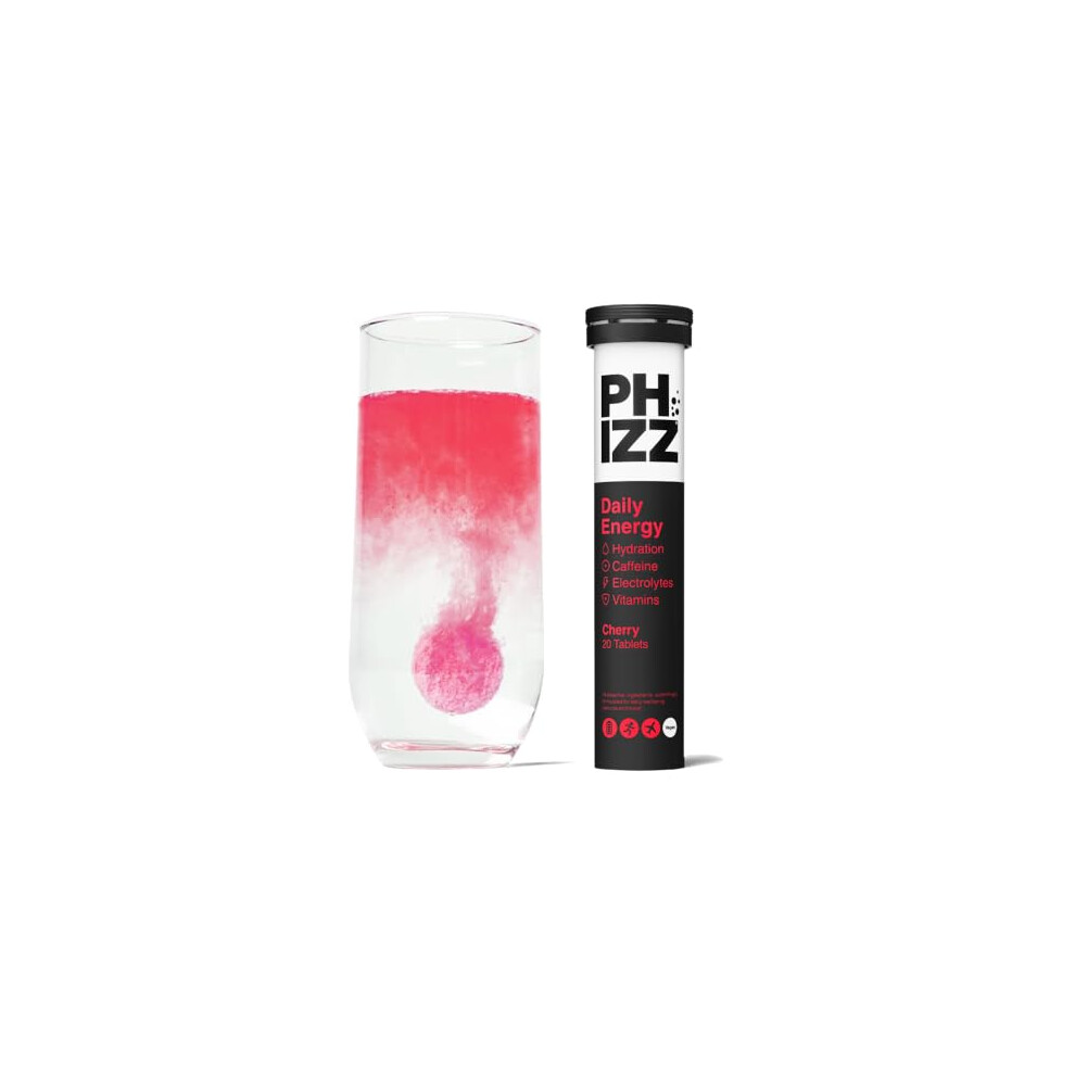 Phizz Daily Energy Electrolyte Hydration Tablets - 16 Vitamins and Minerals - Effervescent Energy Tablets - 75mg Caffeine (Daily (Cherry), 20)