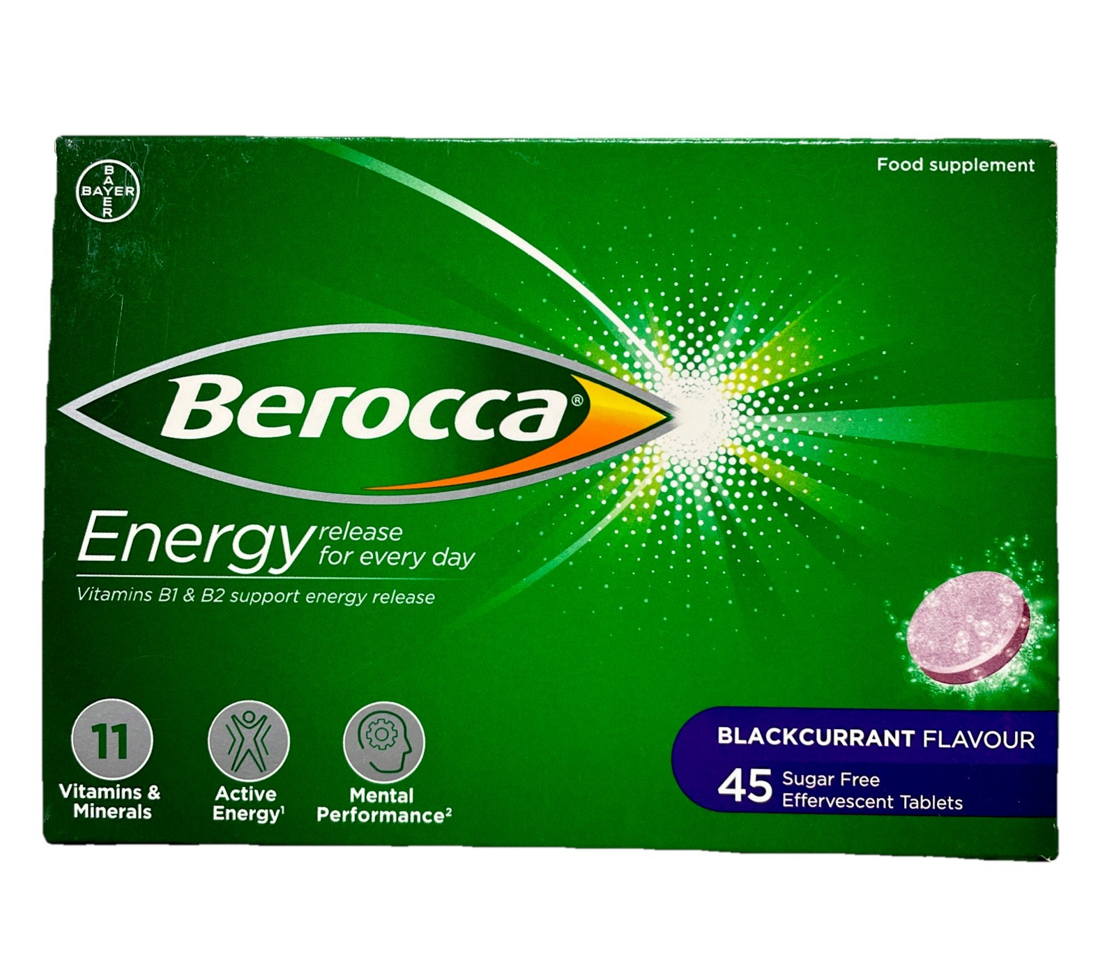 Berocca Blackcurrant Effervescent - 45 Tablets Vitamins B1 & B2 Sugar Free