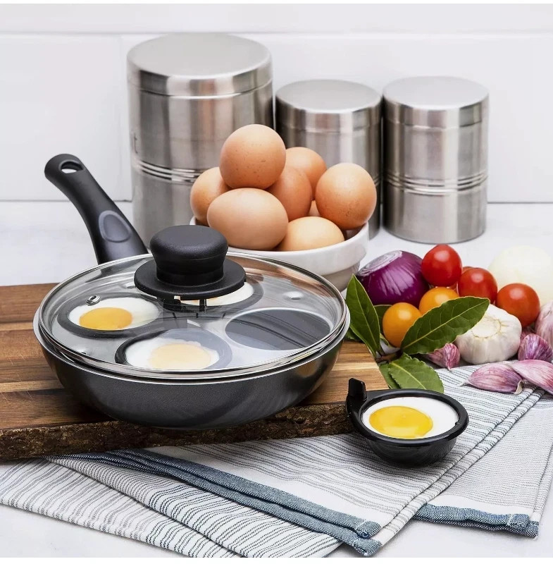 4 cup Egg Poacher Pan Non-Stick egg boiler Cooking Saucepan With Glass Lid 20cm