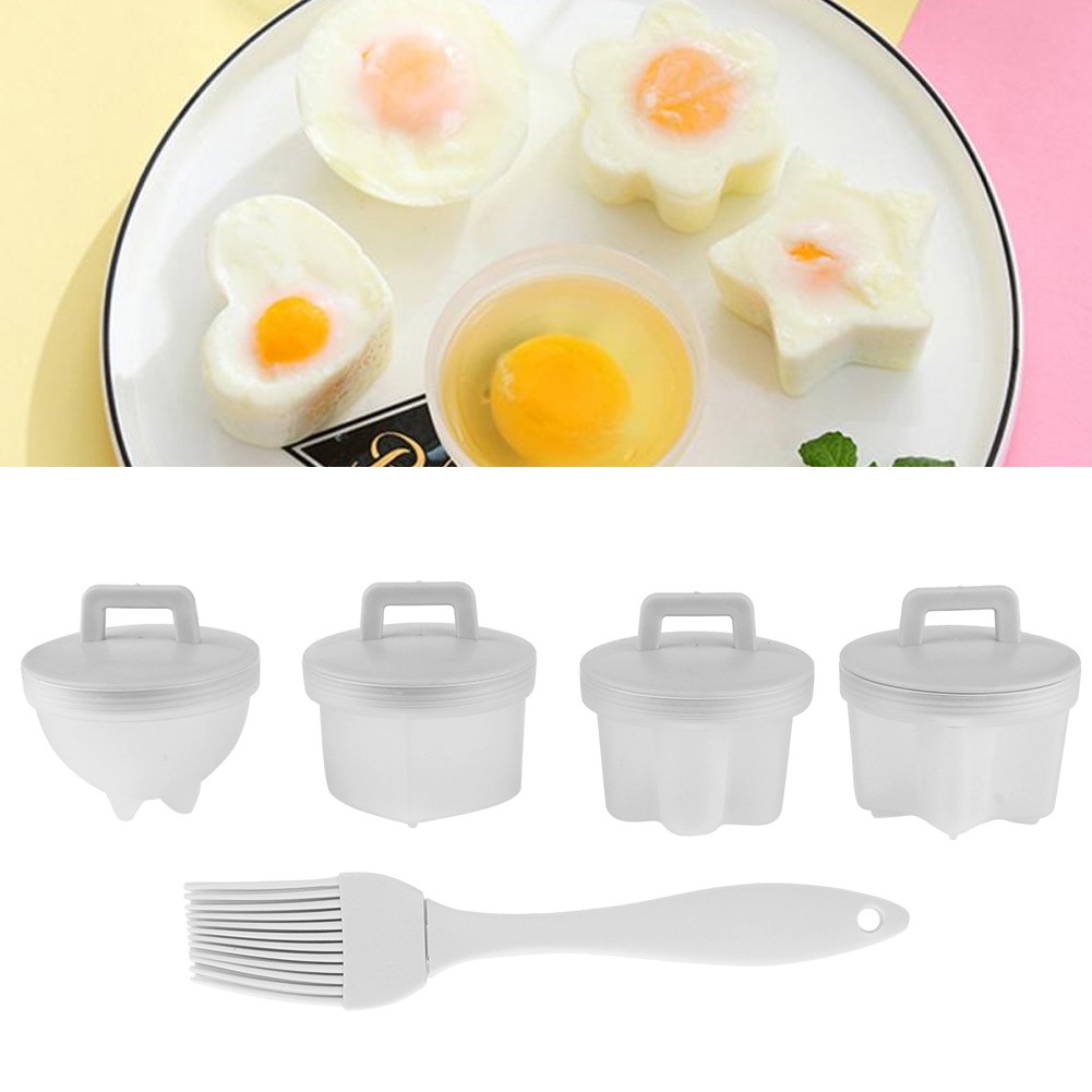4 Pcs/set Cute Egg Poacher Plastic Egg Boiler Kitchen Egg Cooker Tools Egg Mold Form Maker with Lid Brush Pancake