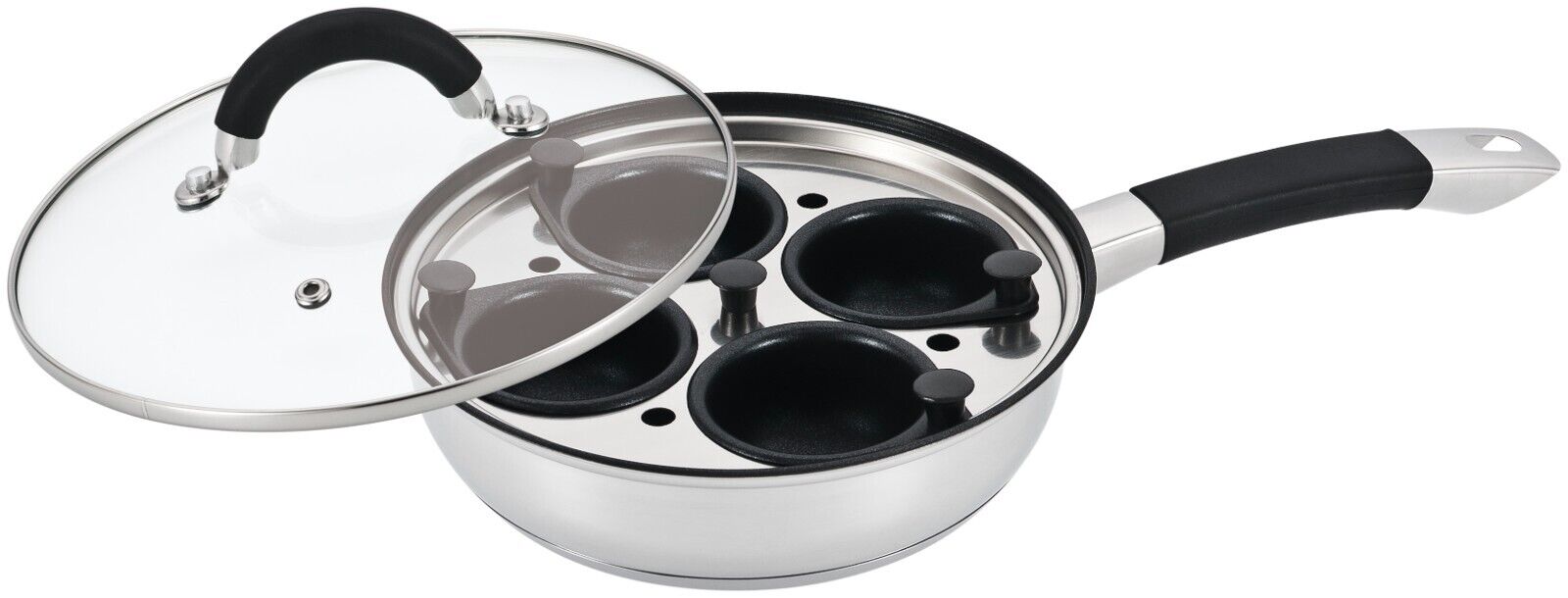 4 EGGS BOILER POACHER EGG BOILER STAINLESS STEEL GLASS LID STEAM VENT 22CM