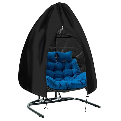 Hiseng Egg Chair Cover, Egg Chair Covers Waterproof With Zipper Garden Patio Furniture Protector Patio Double Egg Chair Cover Hanging Waterproof Covers for Outdoor (115 * 190CM,Black)