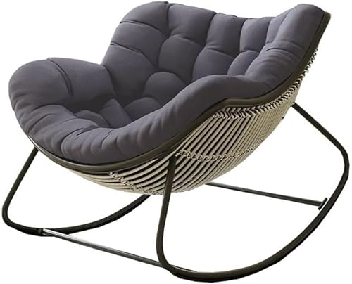 Rocking Chair with Cushion, Oversized Egg Chair Indoor Outdoor, All-Weather Lounge Rocker for Patio, Balcony, Garden(K,1 Chair)