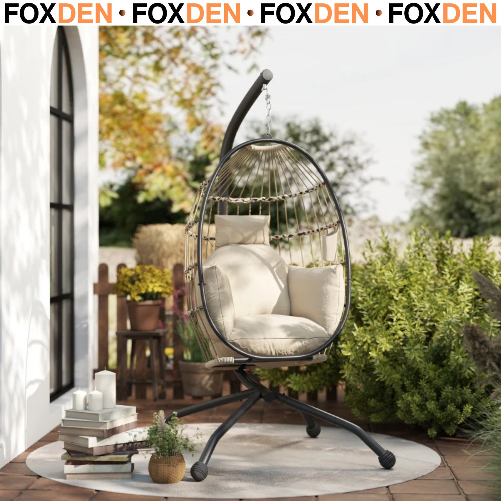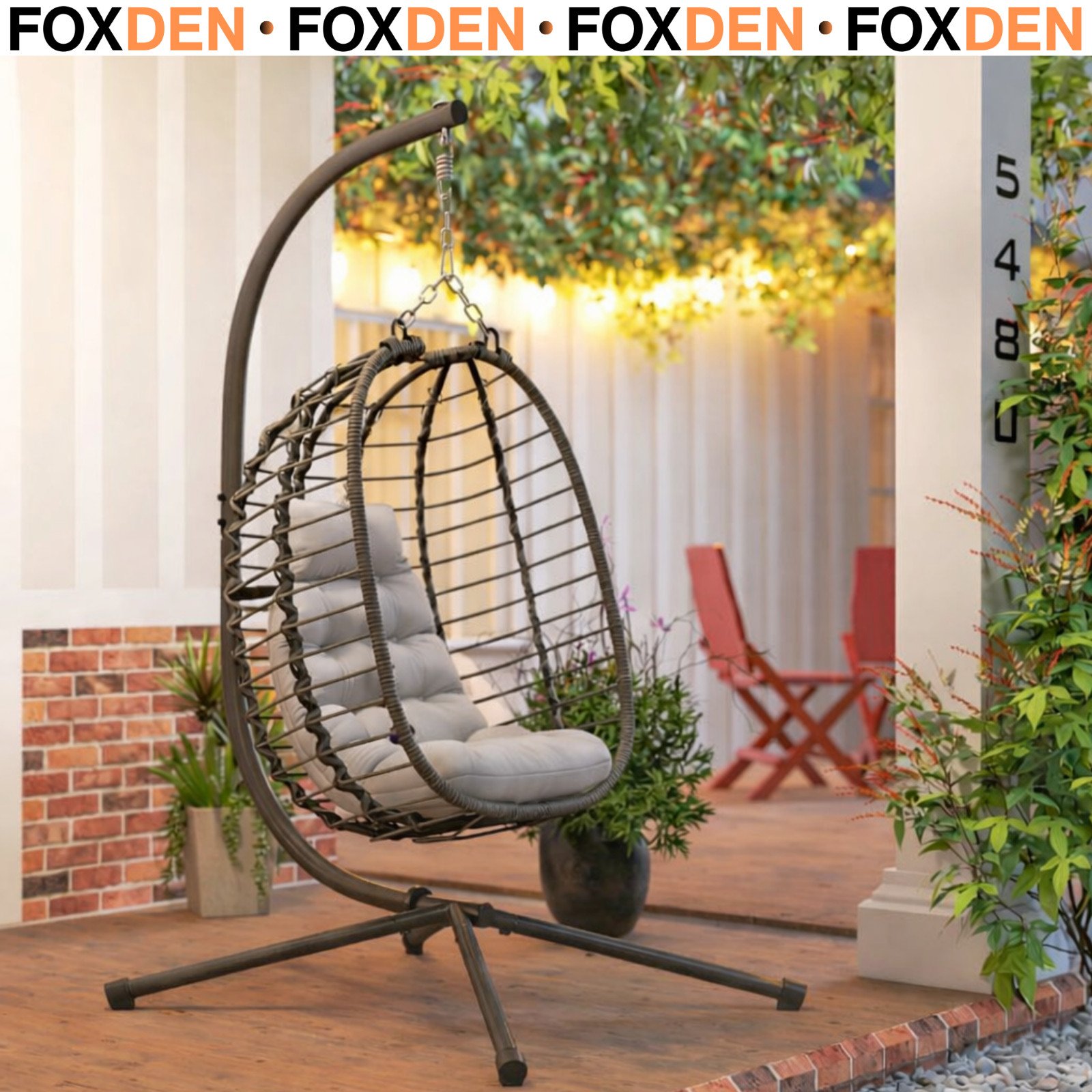 Khaki Hanging Egg Chair Outdoor Garden Conservatory Folding Basket and Cushion