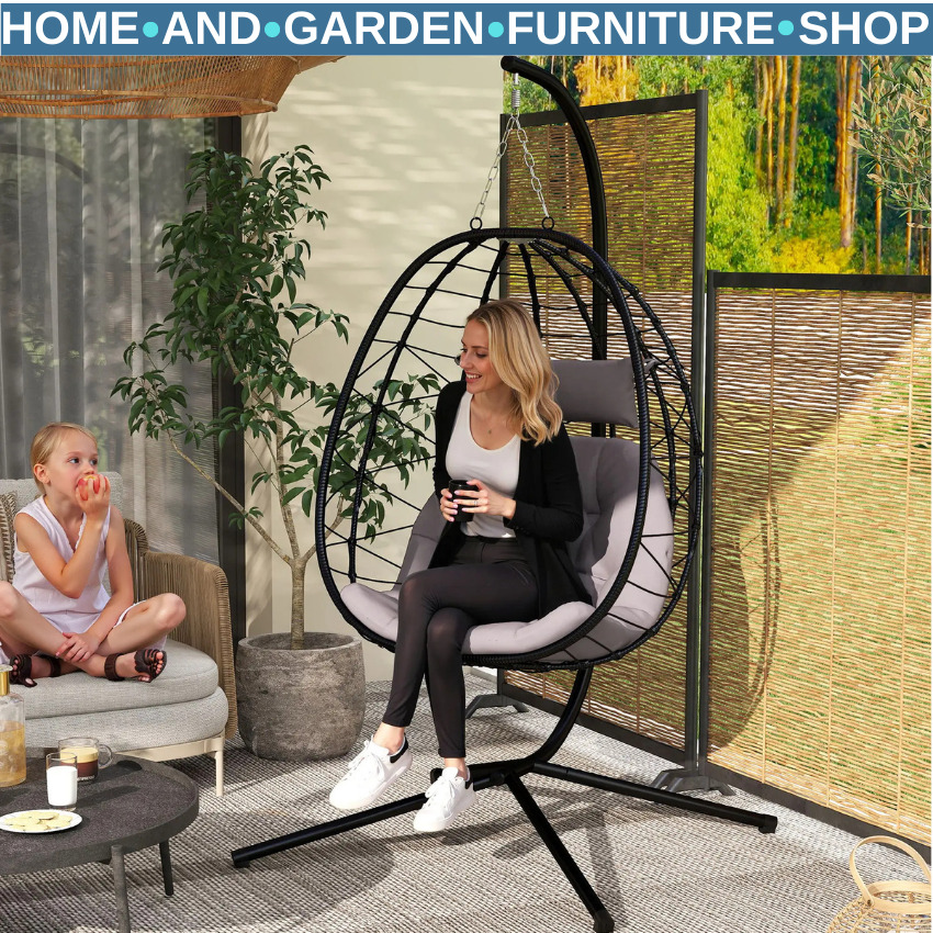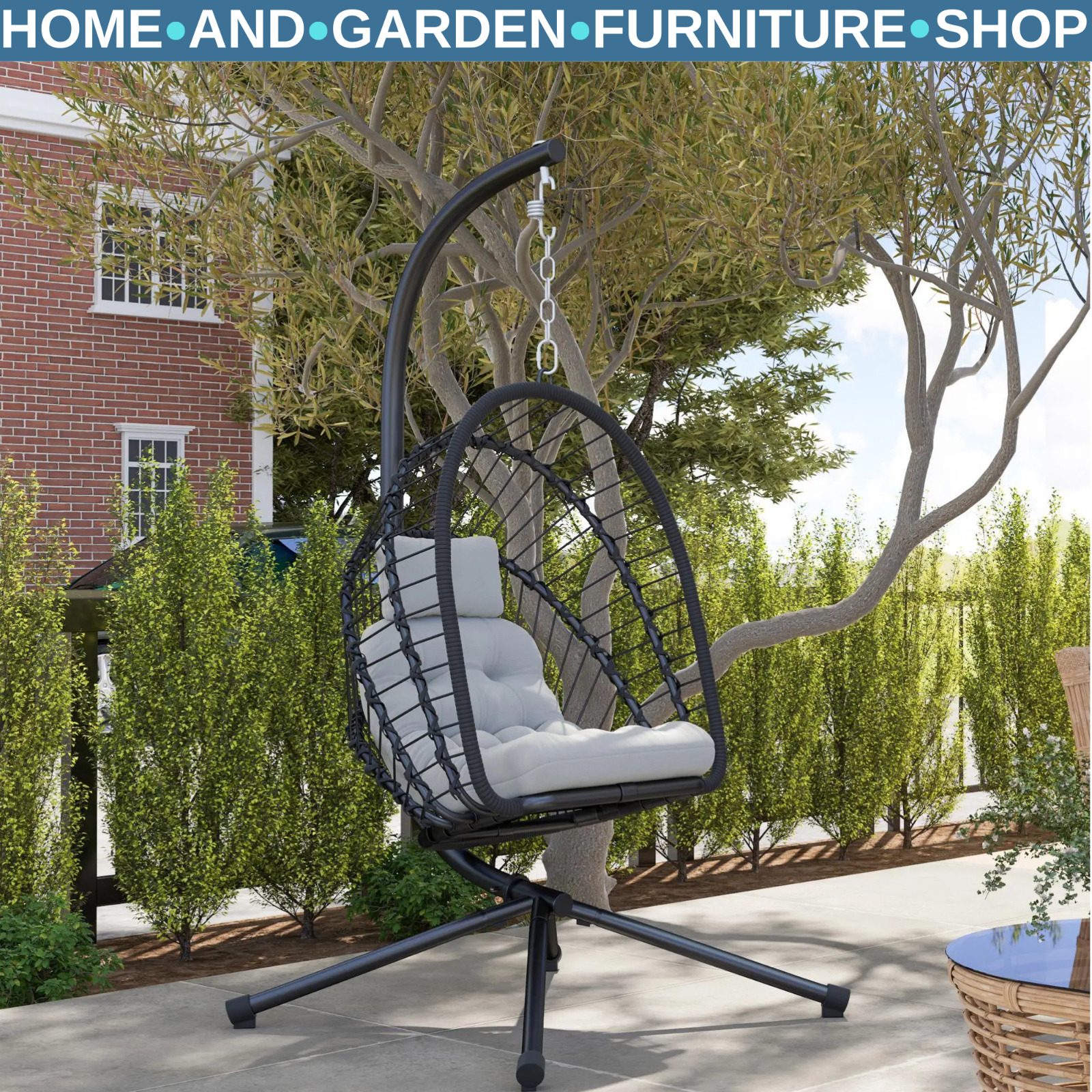 Hanging Egg Chair Folding Swing Hammock with Cushion and Stand for Garden Patio