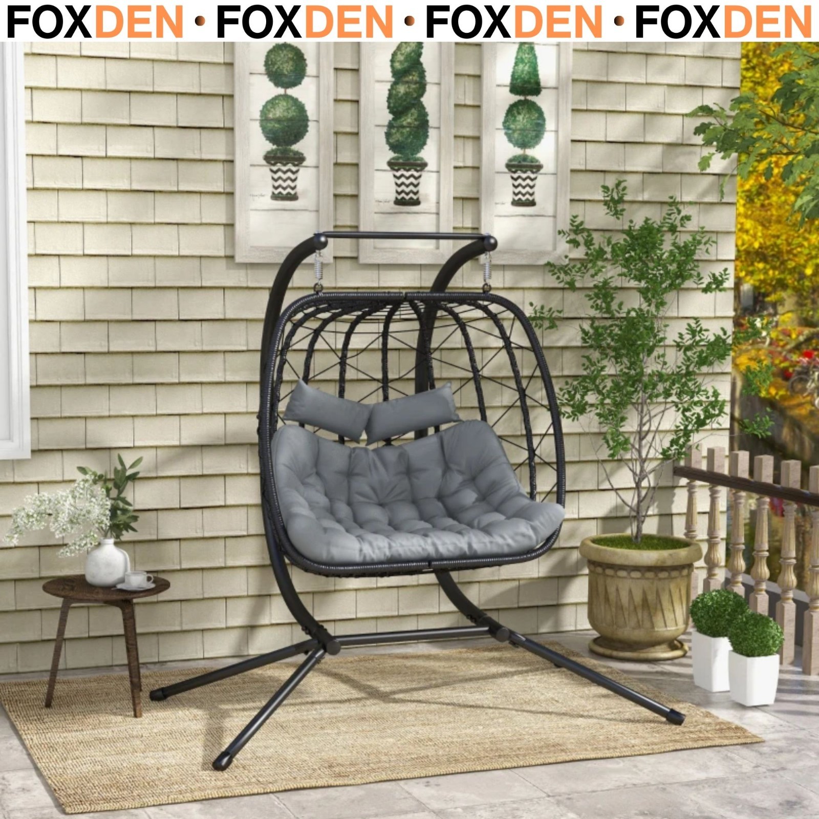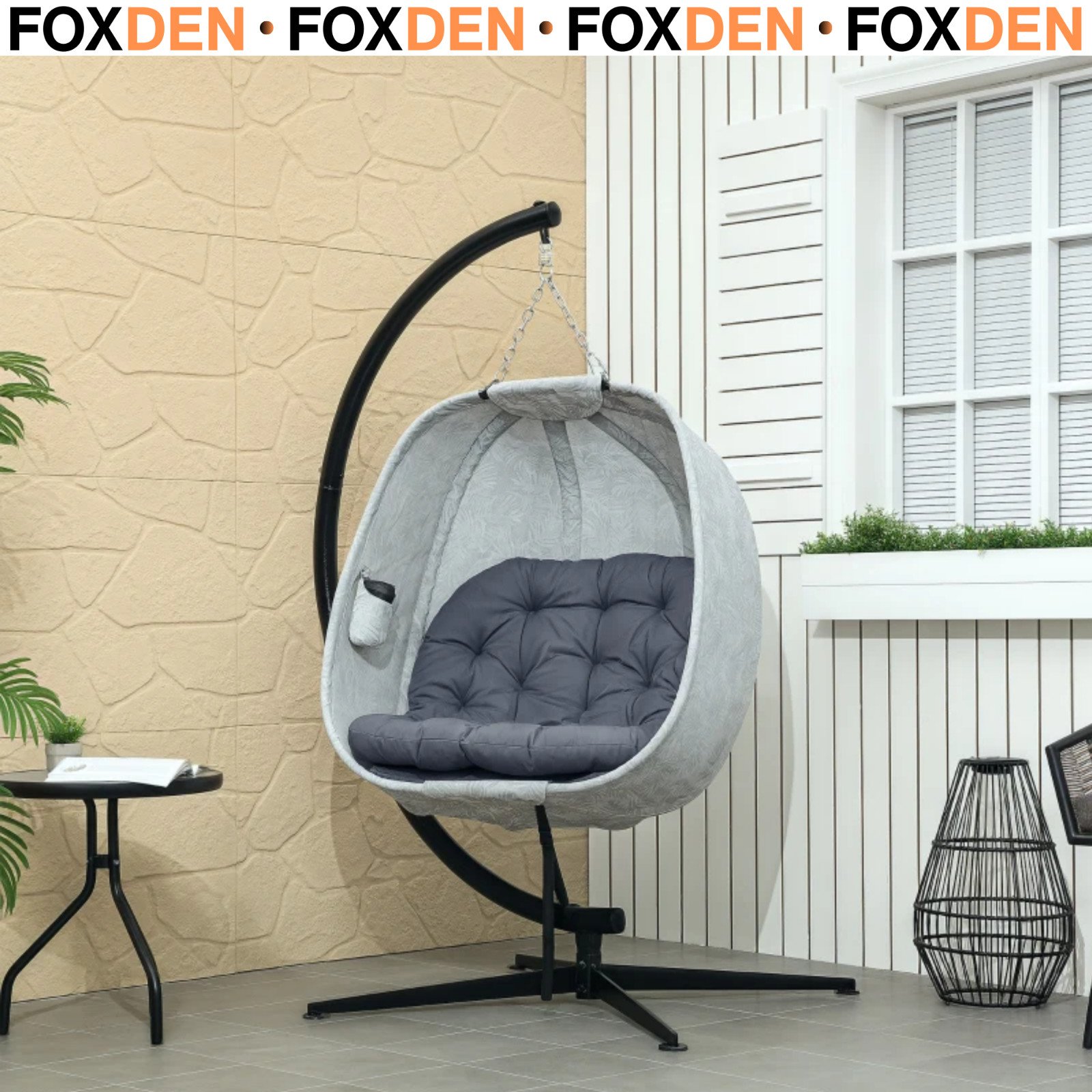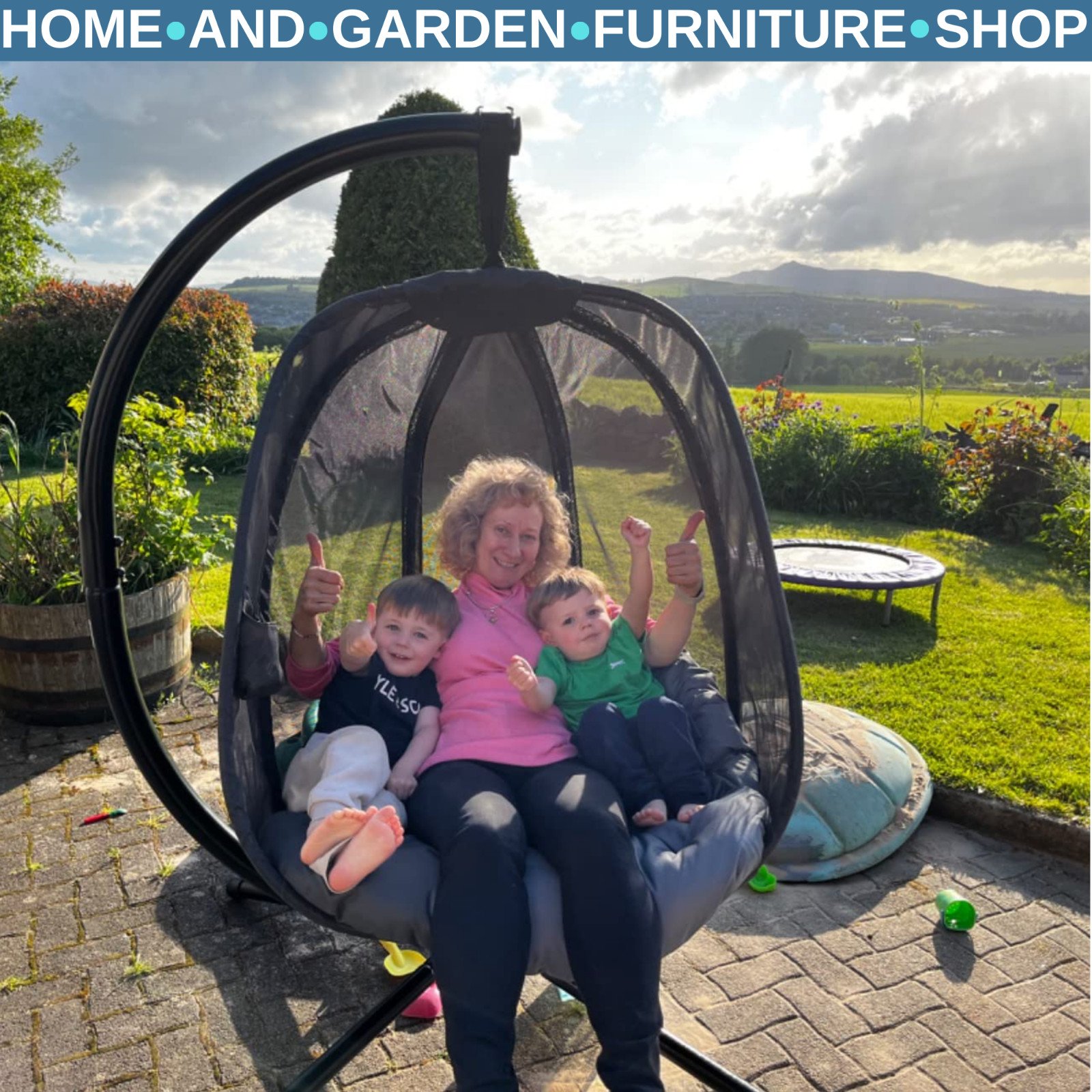 Samuel Alexander Grey Luxury 2 Seater Double Hanging Egg Chair Garden Outdoor Swing Folding With Cushions and Cover