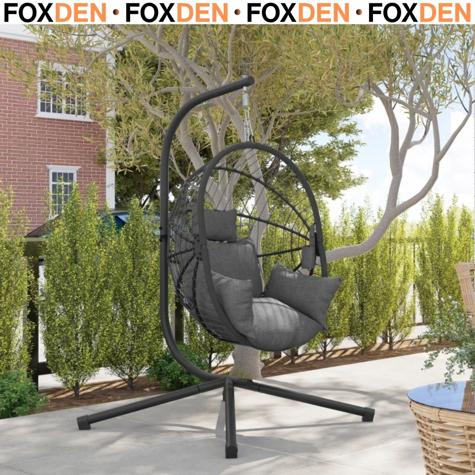 Garden Egg Chair Hanging Swing Chair Thick Cushion Grey Metal Frame Patio Seat