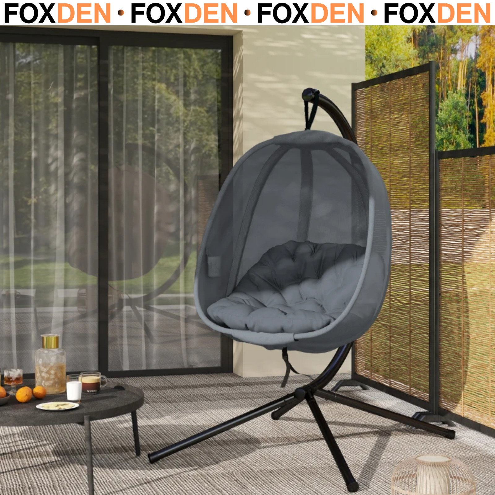 Metal Stand Hanging Egg Chair, with Full Body Padded Seat - Grey 115x 106x 188cm