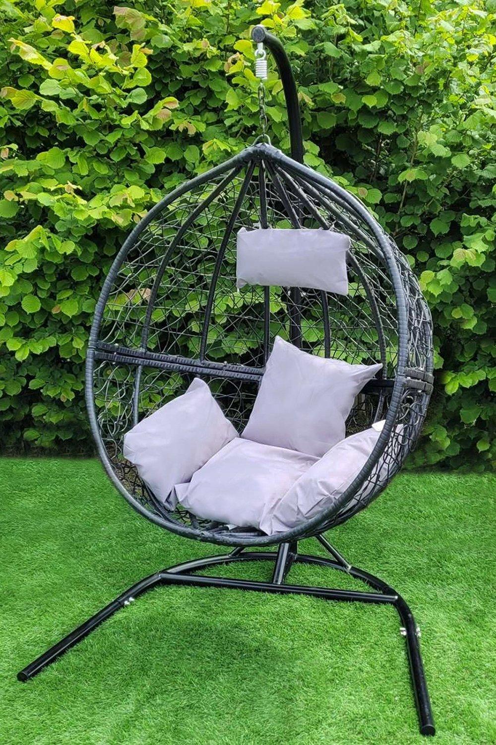 Samuel Alexander Grey Hanging Egg Chair With Stand Waterproof Cover And Cushions