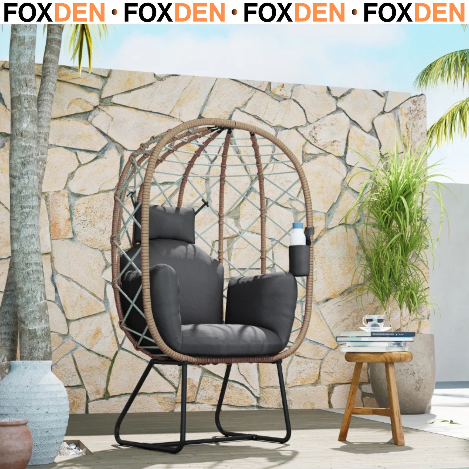 Egg Shaped Chair Wicker & Rope Basket Grey Outdoor Furniture