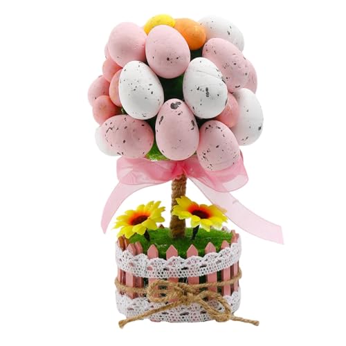 Générique Easter Egg Tree Decoration, Easter Eggs with Bow and Flowers, Flocked Egg Figurines, Easter Home Decoration, Study, Bedroom, Dining Room, Table Ornaments (A)