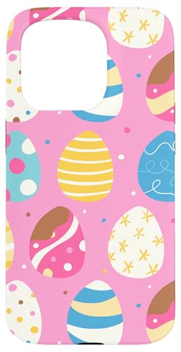 Colorful Easter Egg Spring Eggs Pattern Pink Bunnies Boy Case for iPhone 15 Pro