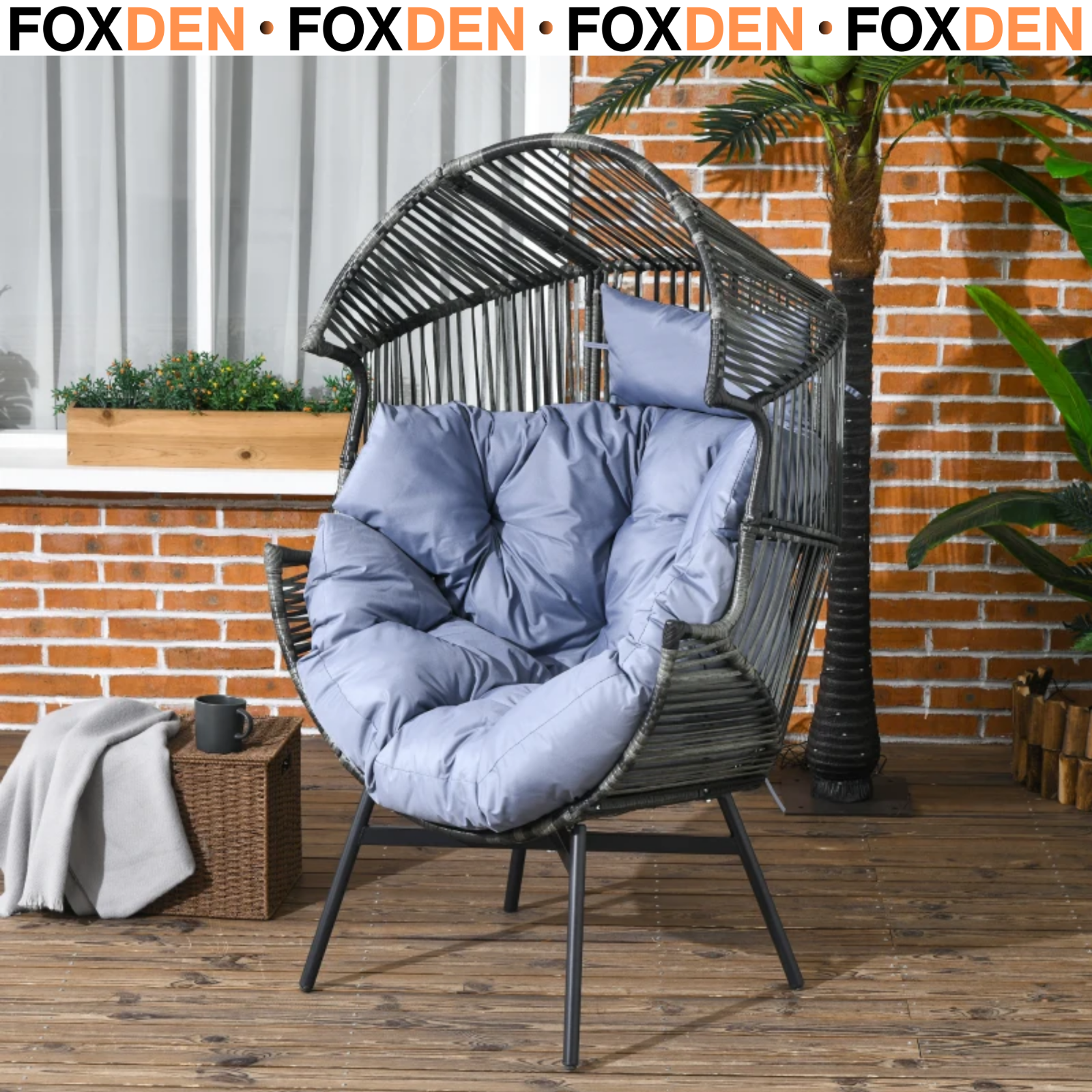 Home Detail Antalya Outdoor Garden Egg Chair, Rattan, Dark Grey, Modern Style, Includes Cushions & Cover, Perfect for Patio Garden