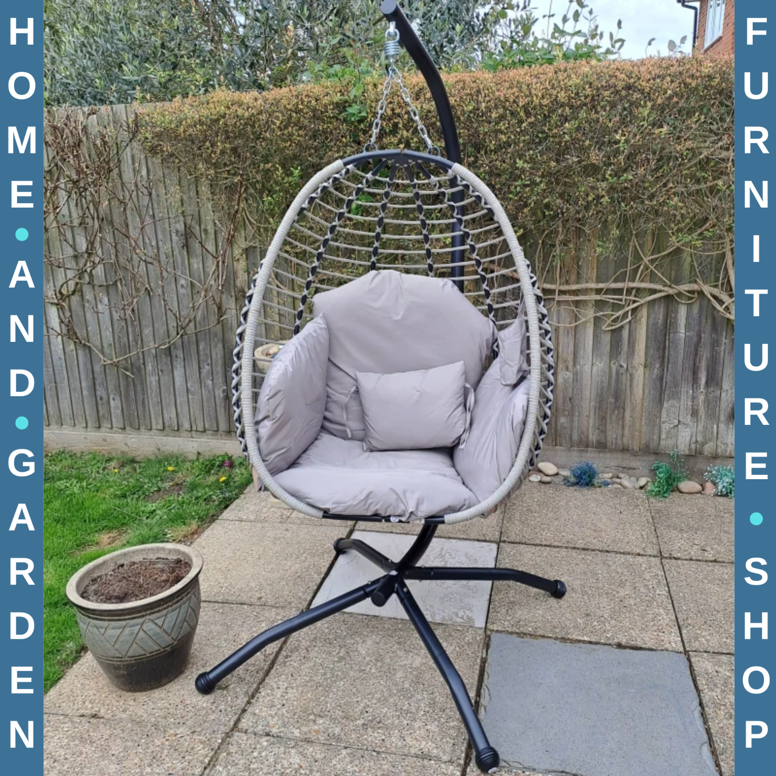 Garden Egg Chair Hanging Swing Chair Thick Cushion Grey Metal Frame Patio Seat