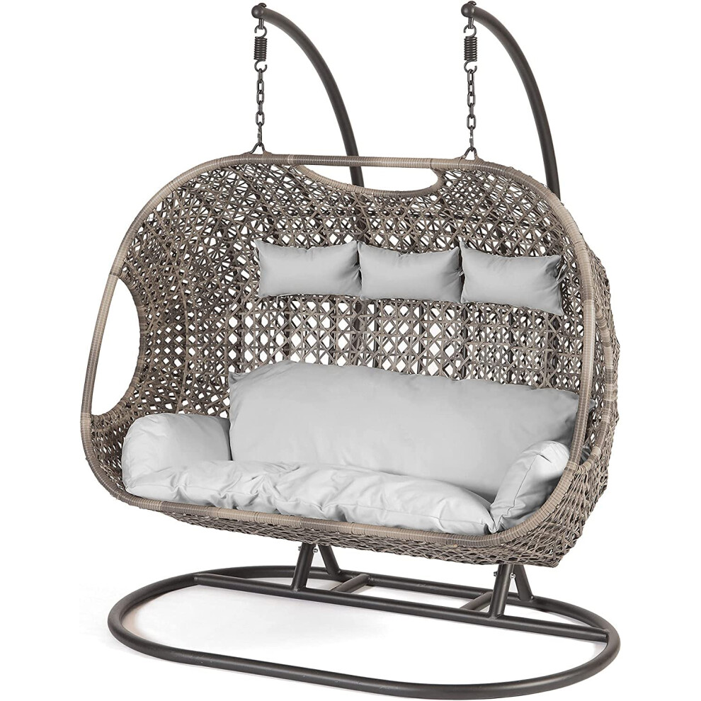 Samuel Alexander Grey Luxury 2 Seater Double Hanging Egg Chair Garden Outdoor Swing Folding With Cushions and Cover