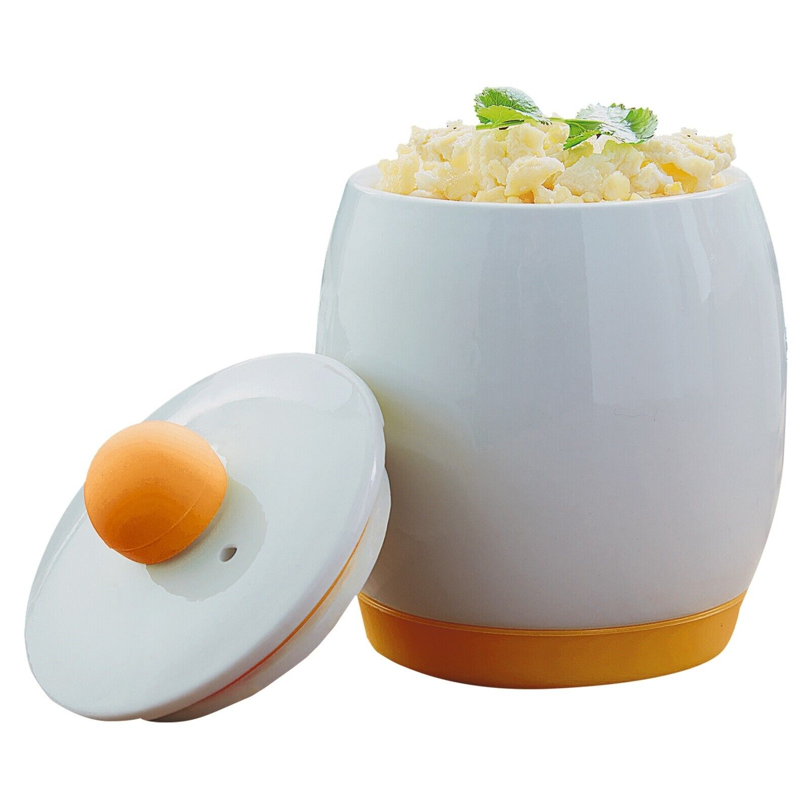 Microwave Egg Poacher Cooker- Perfect Scrambled and Poached Eggs - White Ceramic