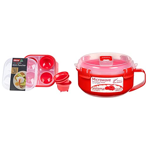 Sistema Microwave Egg Cooker Easy Eggs | Egg Poacher with Steam Release Vent | 270 ml | BPA-Free | Red & Microwave Round Bowl | Microwave Food Container | 915 ml | BPA-Free | Red/Clear