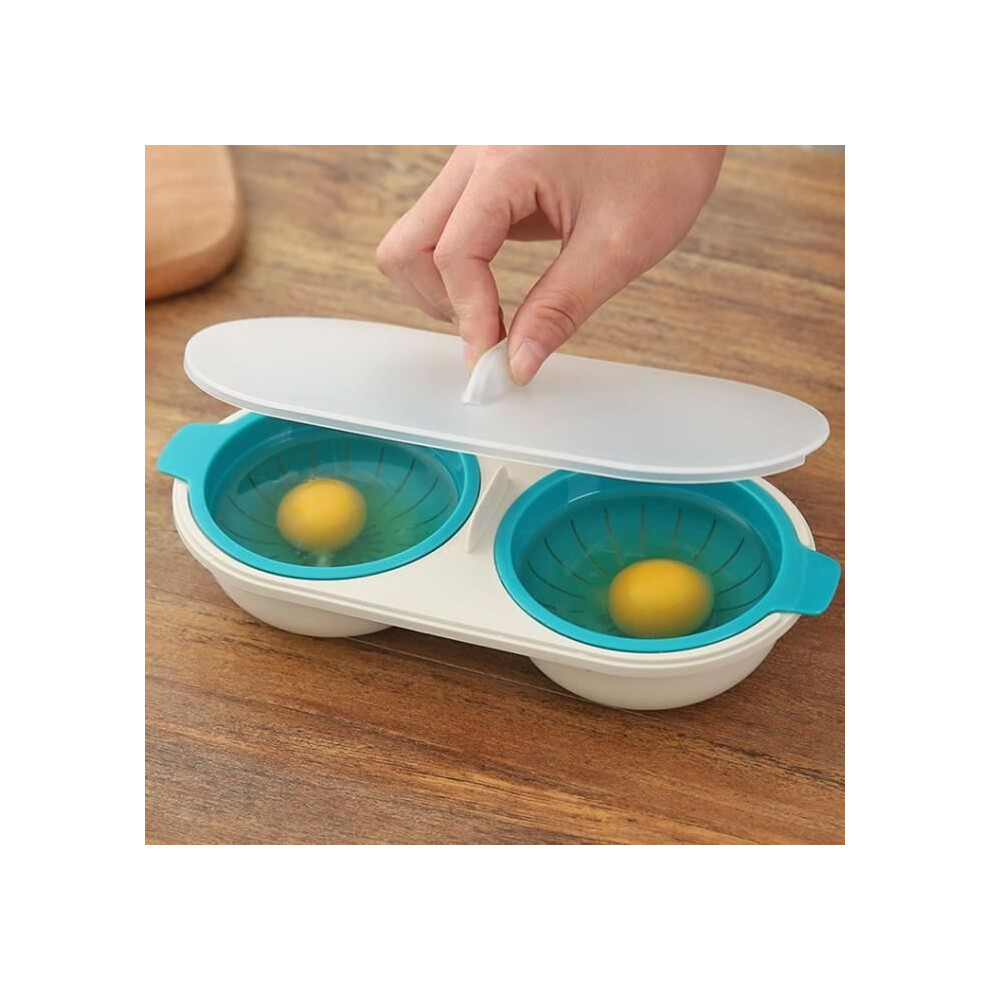 B- Plastic Microwave Double Egg Poacher Microwave Oven Egg Steamer Kitchen