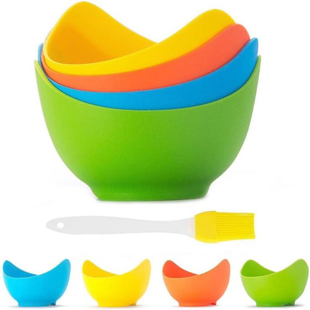 Silicone Egg Poacher Microwave, 4 Non-Stick Kitchen Egg Cookers with 1 Oil Brush for Cooking Utensils, Steamers, Microwave Ovens