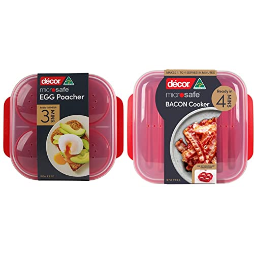Décor Microsafe Egg Poacher | BPA Free | Microwave Cookware | Dishwasher Safe | 4 Egg Tray & Microsafe Bacon Cooker | BPA Free | Microwave Cookware | Dishwasher Safe, Red, One Size, 225600-004