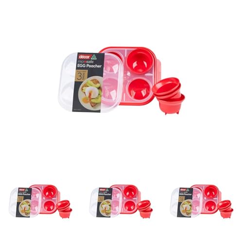 Décor Microsafe Microwave Steam Egg Poacher. Cooks 1-4 Eggs at Once in Under 3 Minutes. BPA Free and Fully Dishwasher and Freezer Safe. with Safety Hold Handles and steam Release Vents. Red.
