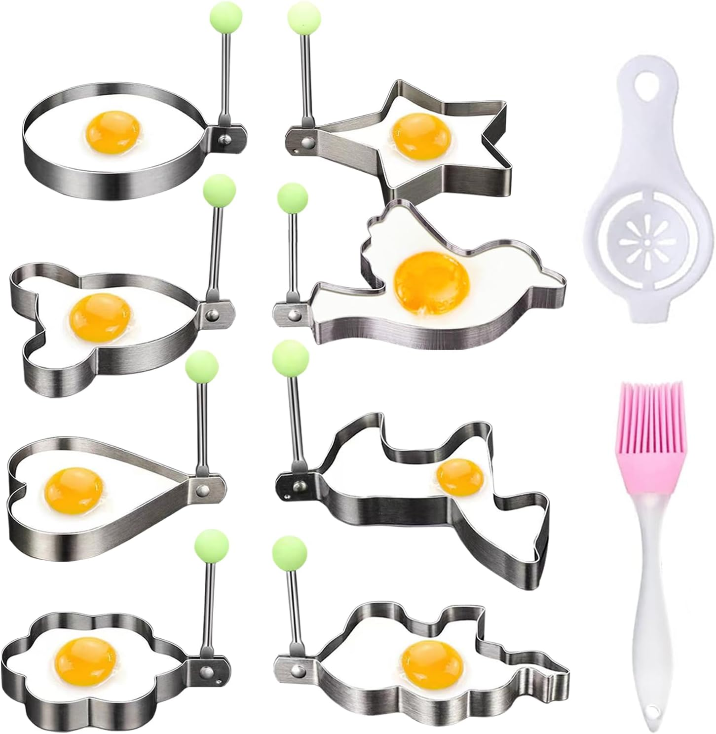Stainless Steel Egg Rings - 8PCS Non-Stick Fried Egg Rings with Brush and Yolk S
