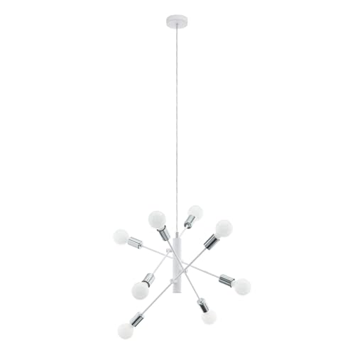 EGLO Gradoli Pendant Light, 8-Bulb Pendant Light, Metal Pendant Light in White and Chrome, Dining Table Lamp, Living Room Lamp Hanging with E27 Socket, Diameter 71 cm