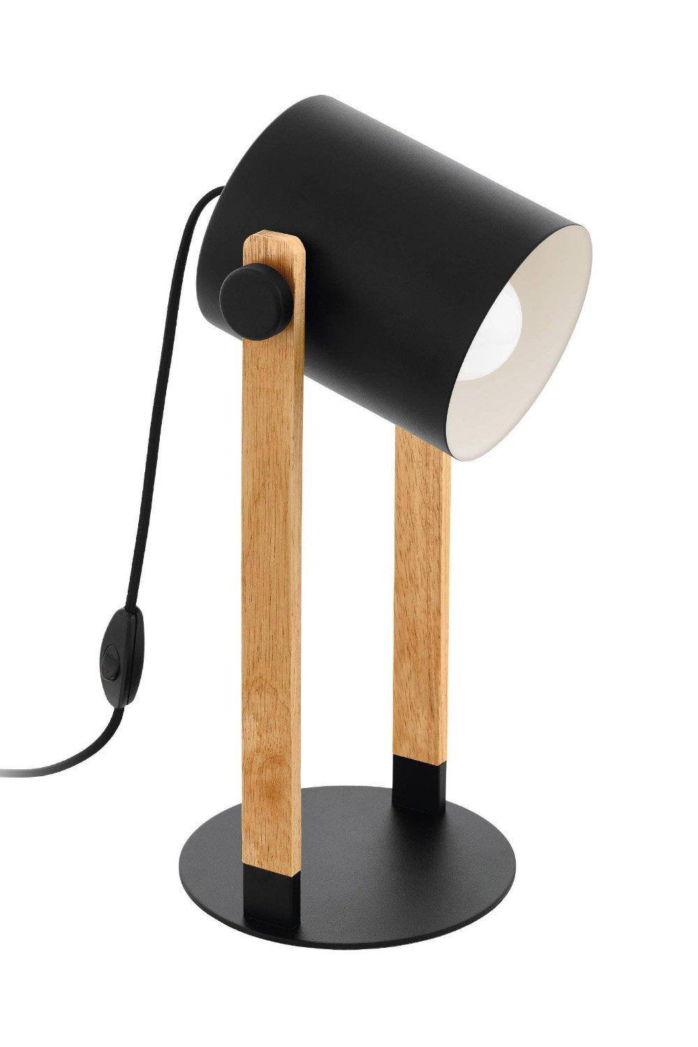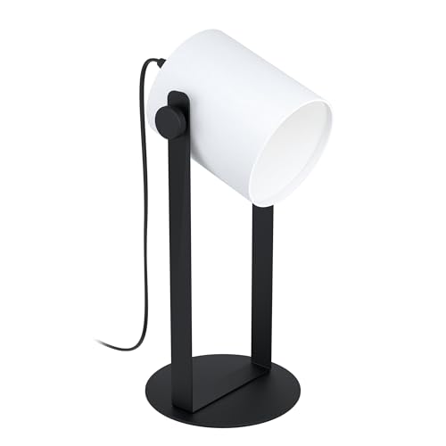 Eglo Hornwood Table Lamp, 1 Bulb Table Lamp, Vintage, Industrial, Retro, Bedside Lamp Made of Steel, Wood and Textile, Living Room Lamp in Black, White, Lamp with Switch, E27 Socket
