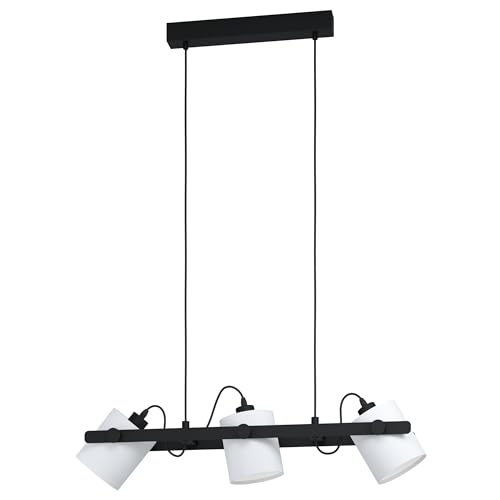 Eglo Hornwood Pendant Light 1, 3-Light Hanging Lamp Vintage Industrial Retro Steel, Wood, Textile Black White Dining Table Lamp Living Room Ceiling Light with E27 Socket