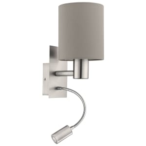 Eglo Pasteri Fabric LED Wall Lamp with Reading Light - Taupe