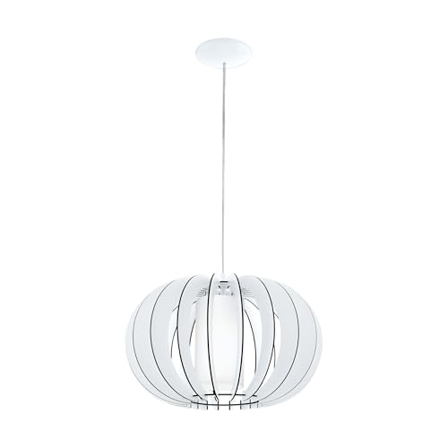 EGLO Stellato 2 Pendant Light, 1-Bulb Vintage Pendant Light Made of Steel, Wood and Glass in White, Dining Table Lamp, Living Room Lamp Hanging with E27 Socket, Diameter 40 cm