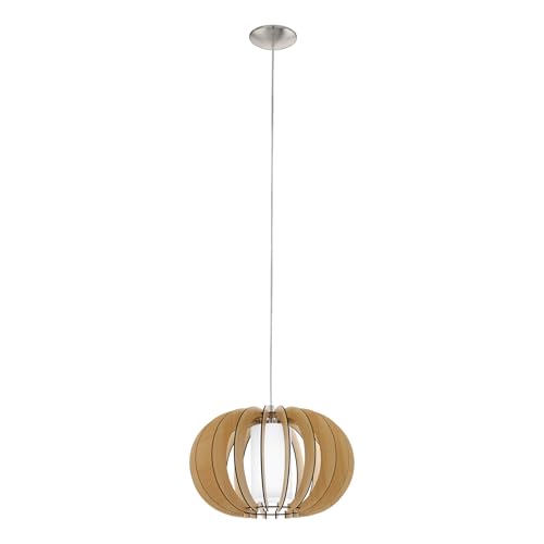 EGLO Stellato 1 Pendant Light, 1-Bulb Vintage Modern Pendant Light Made of Steel, Wood and Glass in Matt Nickel, Maple, White, Dining Table Lamp, Living Room Lamp Hanging with E27 Socket, Diameter 40
