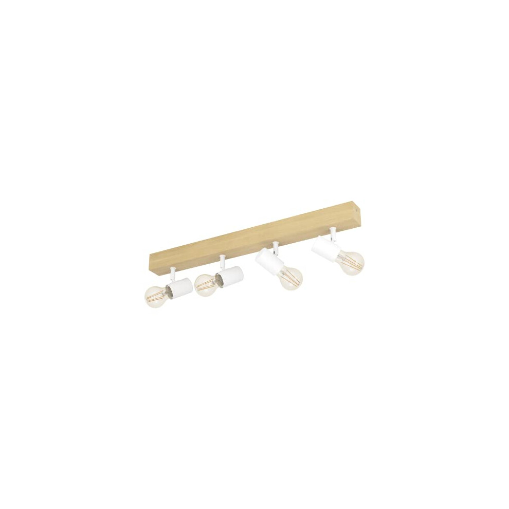 EGLO Townshend 3 ceiling lamp, 4 flame vintage ceiling spot in industrial design, retro lamp made of steel and wood, white, brown, E27 socket