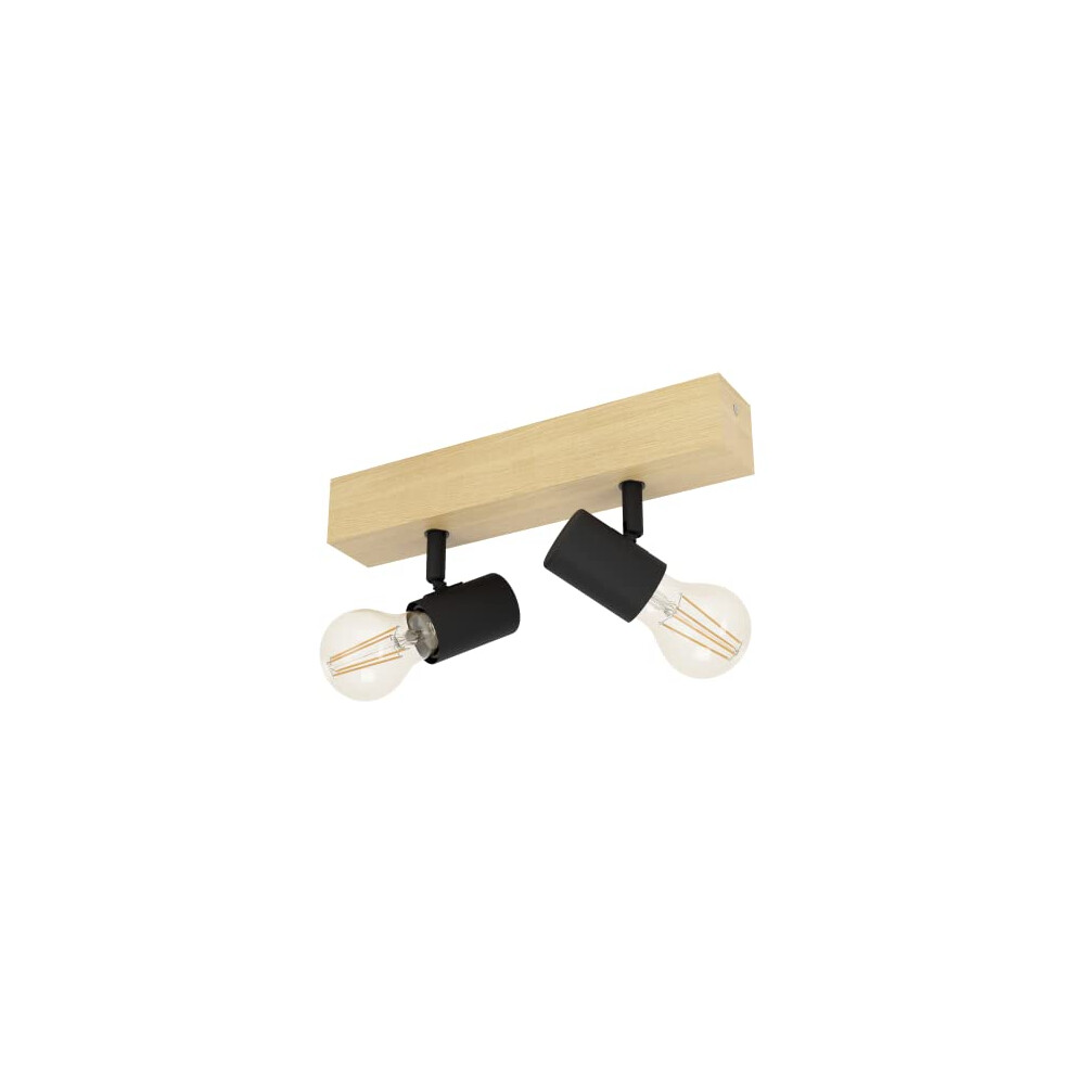 Eglo Townshend 3 Ceiling Light, 2-Flame Vintage Wall Spotlight with an Industrial/Retro Design Made of Steel and Wood, Black and Brown Colours, E27