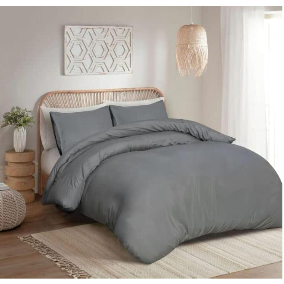 100% Egyptian Cotton Duvet Cover Set |200 Thread Count Plain Dyed Duvet Quilt Cover Set With Free Pillowcases| Non-Iron Easycare Bedding Set - Single Double King Super King Sizes (Grey, Super King)