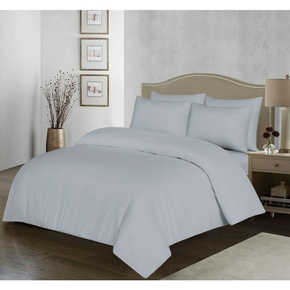 100% Egyptian Cotton Duvet Cover Set |200 Thread Count Plain Dyed Duvet Quilt Cover Set With Free Pillowcases| Non-Iron Easycare Bedding Set - Single Double King Super King Sizes (Silver, King)