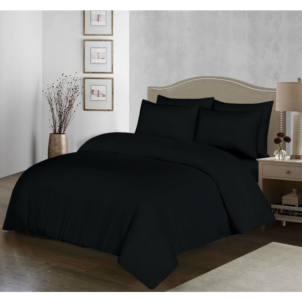 100% Egyptian Cotton Duvet Cover Set |200 Thread Count Plain Dyed Duvet Quilt Cover Set With Free Pillowcases| Non-Iron Easycare Bedding Set - Single Double King Super King Sizes (Black, Super King)