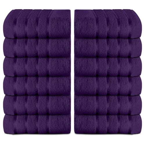 GC GAVENO CAVAILIA Premium Face Towel Set 12 Pcs - 100% Ringspun Egyptian Cotton Wash Cloths - Highly Absorbent and Quick Dry (30X30 cm) - 500 GSM Fingertip Towels - Easycare & Durable - Aubergine
