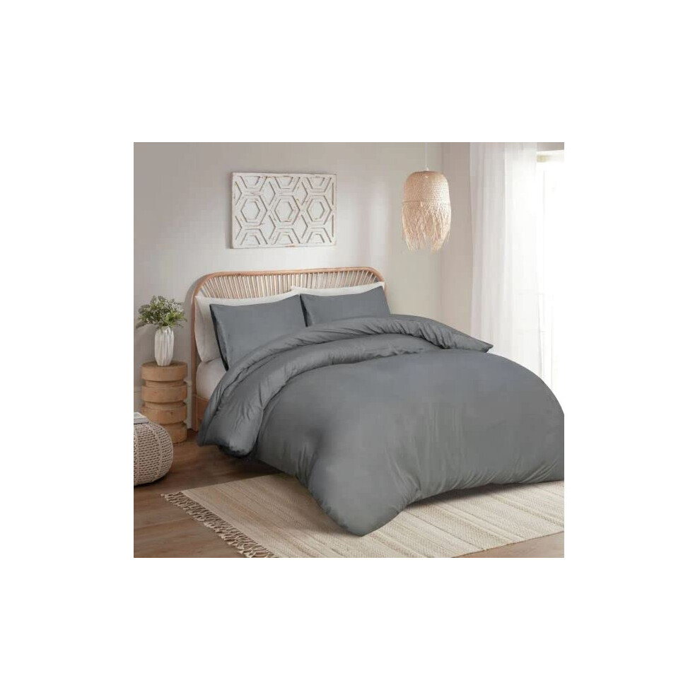 100% Egyptian Cotton Duvet Cover Set |200 Thread Count Plain Dyed Duvet Quilt Cover Set With Free Pillowcases| Non-Iron Easycare Bedding Set - Single Double King Super King Sizes (Grey, Single)